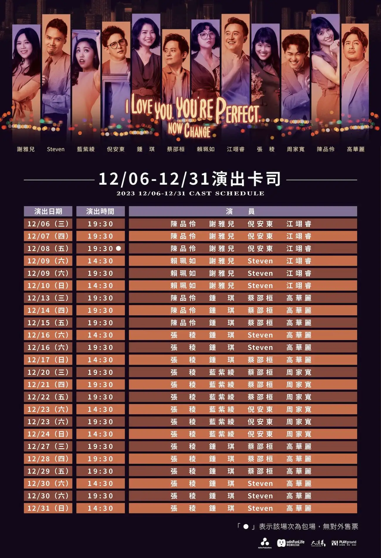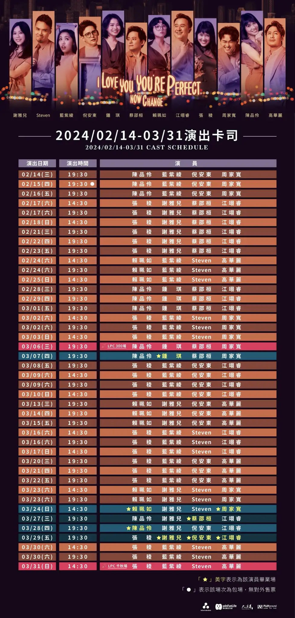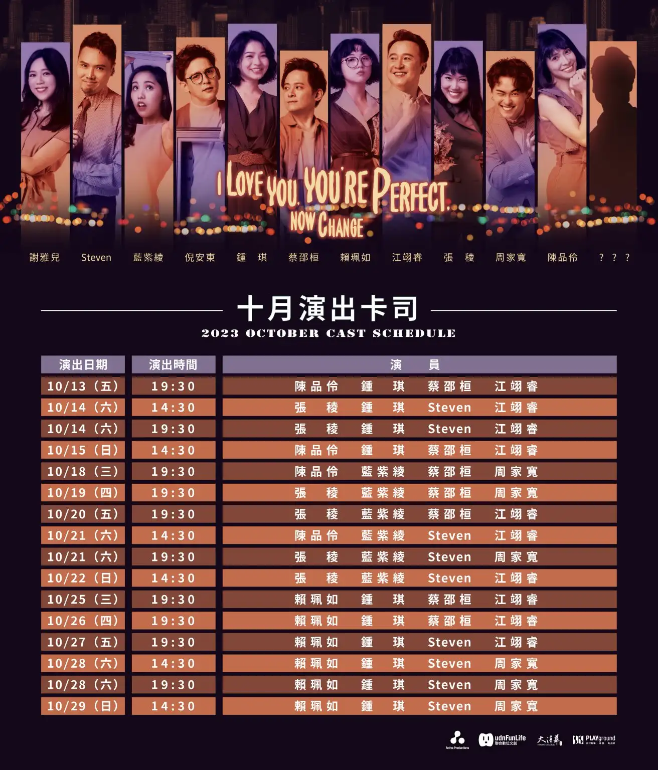 累積184場,超過20,000人次進場體驗愛情的酸甜苦辣,活性界面製作再度為浮沉愛情苦海中的你,帶來史上第二長壽外百老匯音樂劇《I Love You, You’re Perfect, Now Change》。